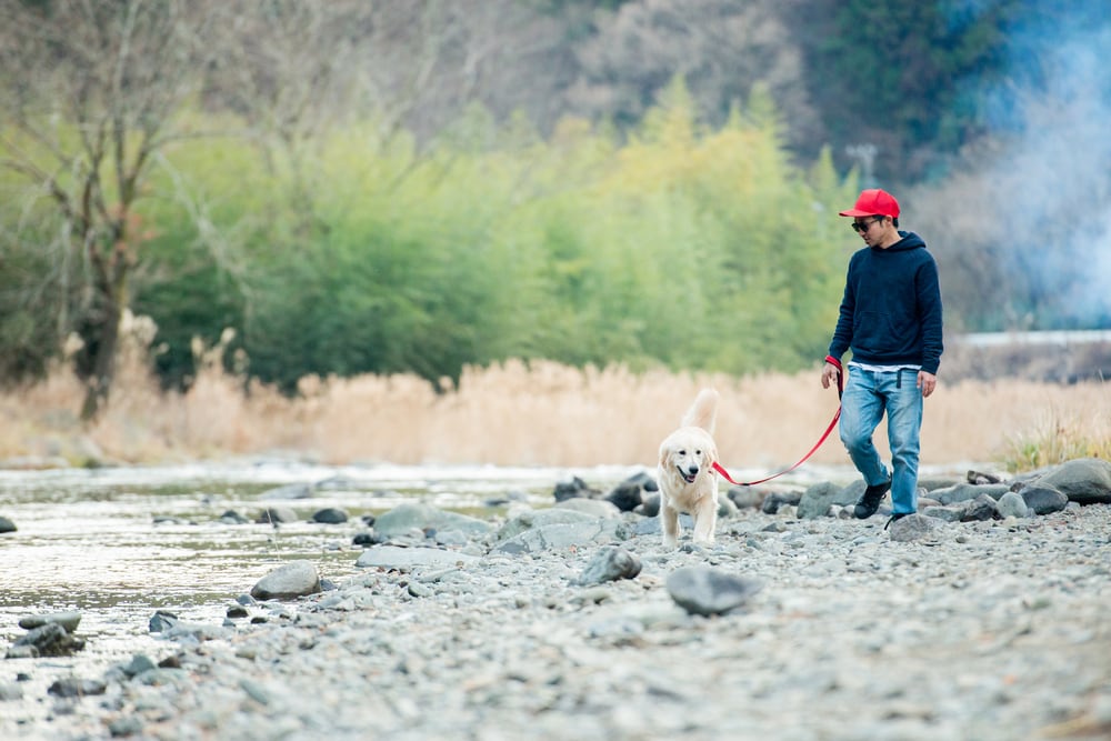 愛犬を近くにキープする際に手を通せるリング状パーツを下部に設けてあります。