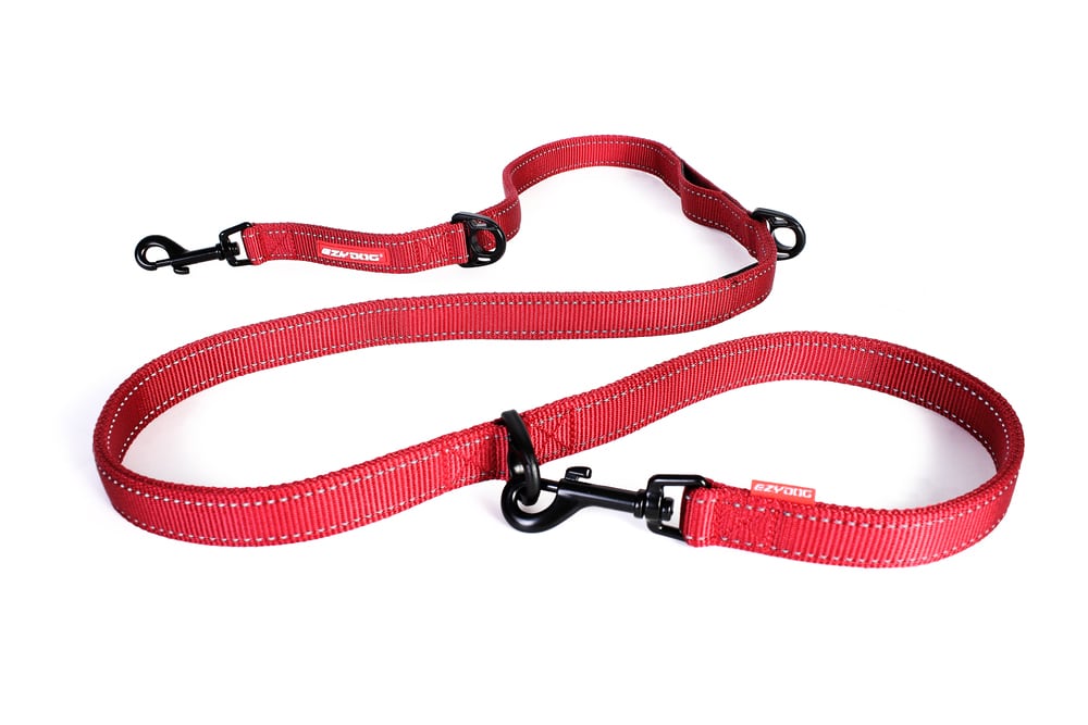 1本で200/120cmのリードや、たすき掛け、2頭引きや、長/短の仮の係留にも使えるリード。リード部分は2重になっており丈夫です。反射機能付。