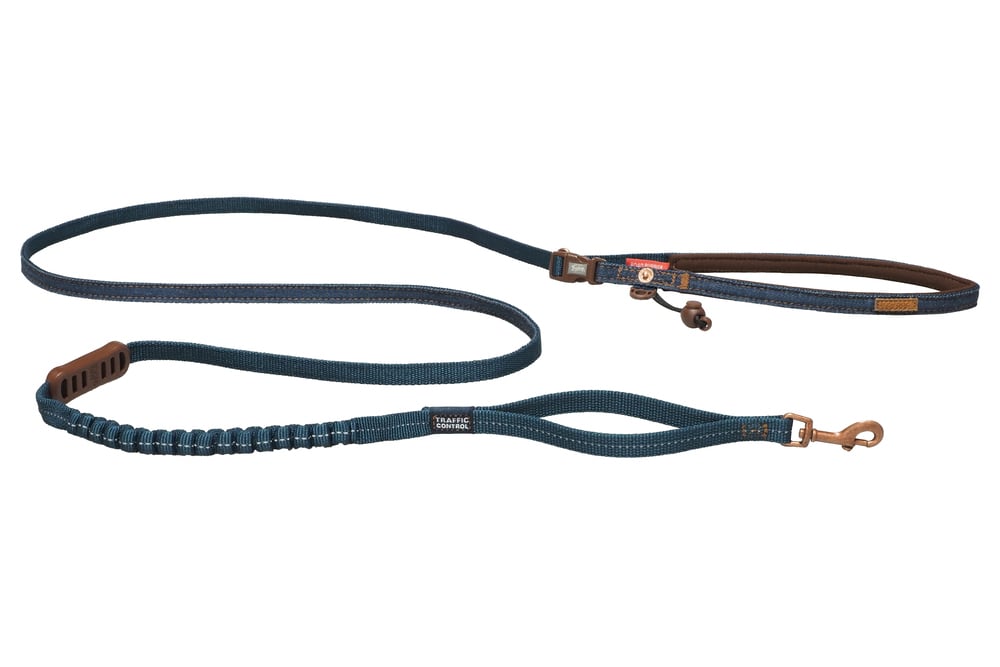ショック吸収機能付きで愛犬の首やオーナー様への負担が軽減される腰に巻くタイプのリード。腰に当たる部分がウェットスーツ素材で優しい。リード装着部分は長さ調整ができ、たすき掛けも可能。ジョギングやトレーニングにも最適。反射機能付。