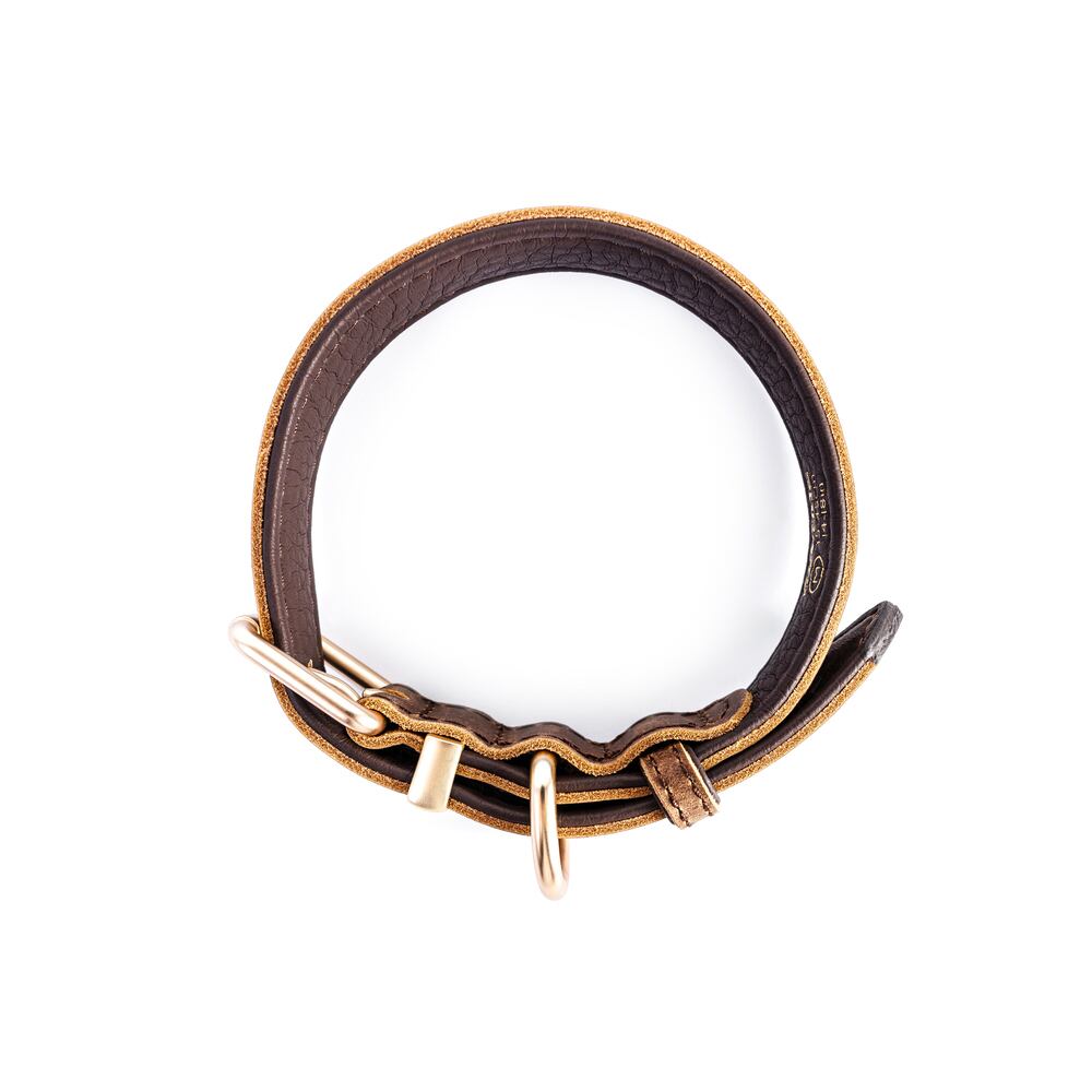 耐久性が高く革本来の良さを味わえる高品質のフルグレインレザーを外側に、柔らかく使い始めから馴染みの良い*ボンデッドレザーを内側に組み合わせて使用。丈夫でしなやか、擦れにくく、愛犬の首にも優しい。