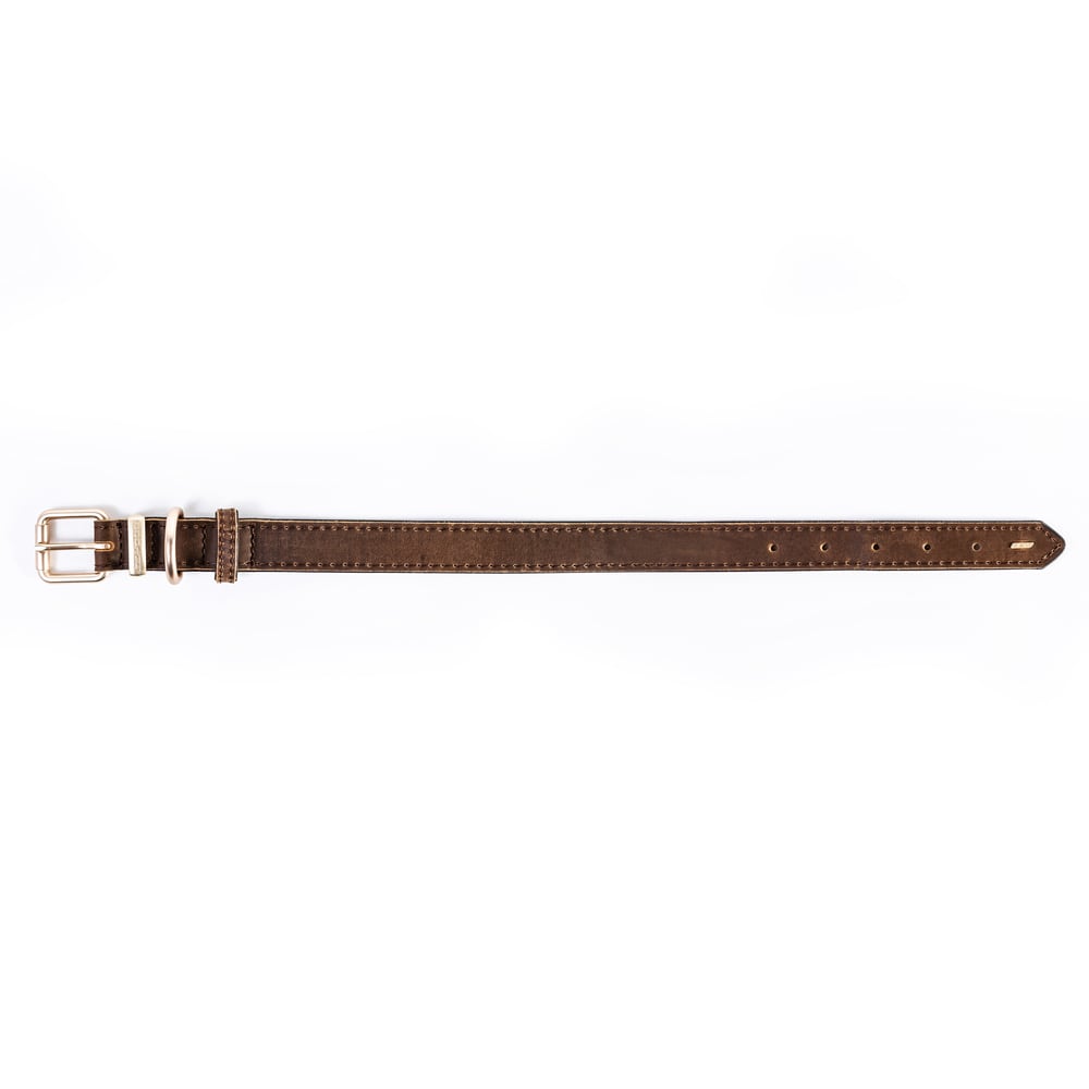 耐久性が高く革本来の良さを味わえる高品質のフルグレインレザーを外側に、柔らかく使い始めから馴染みの良い*ボンデッドレザーを内側に組み合わせて使用。丈夫でしなやか、擦れにくく、愛犬の首にも優しい。