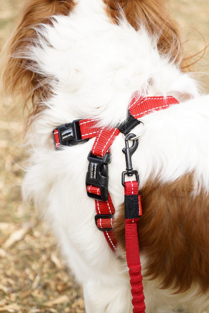 引っ張られる力をチェストプレートで緩和する、軽量且つ丈夫なハーネス。ストラップに過度な圧力が加わって、毛や肌が擦れたりするのを防ぎます。2本の独立したストラップでサイズ調整が可能で、激しい動きにも対応。反射機能付。