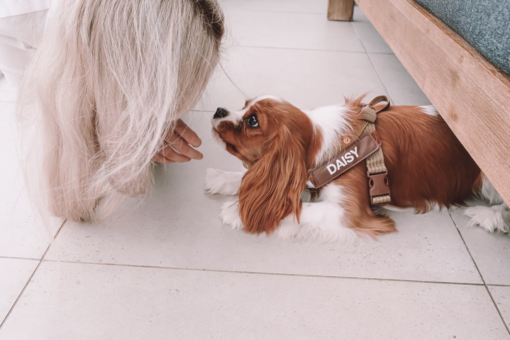 簡単に装着できるミニマルデザインのハーネスで、アクティブに動く愛犬やオーナー様に最適。内側にはEVA製のパッドがあるため、安定がよく速乾性にも優れています。上部には柔らかい樹脂つきのハンドルが付いています。反射素材付き。別売りでお好きな名前入りラベルに付け替え可能。