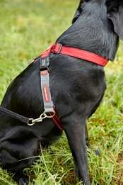 <引っ張り緩和トレーニング用>胴まわり横のリングにリードを繋ぐと、引っ張り緩和トレーニング用ハーネスとして使えます。