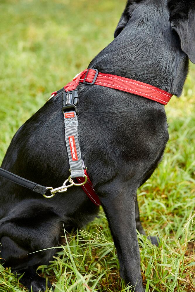 <引っ張り緩和トレーニング用>胴まわり横のリングにリードを繋ぐと、引っ張り緩和トレーニング用ハーネスとして使えます。