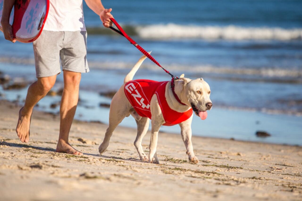 ラッシュガードとは紫外線防止や擦り傷対策などの為、主にマリンスポーツでよく使用されているもの。身体にフィットして汚れを防ぎ、普段の散歩やアウトドアなどに最適で、水辺での使用もお勧め。オーストラリアなど南半球の国々で定められた紫外線カット基準の最高値50+を取得。手洗い可能で、乾き易い。オーナー様も安心、明るく視認性の高い素材を使用。