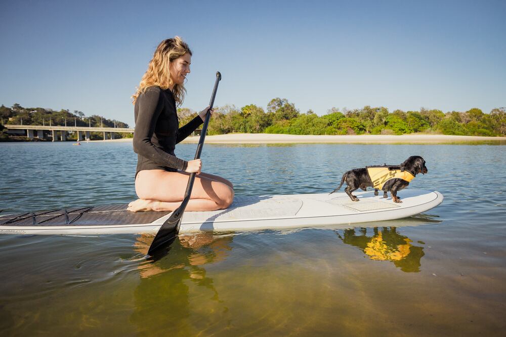 立体的なデザインで体にフィットし、可動域が広く泳ぎやすい。軽くて丈夫な犬用フローティングジャケット。