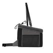 外がよく見えるので車酔いを軽減して、愛犬を車内に固定することで運転の妨げになりません。金属製の枠に柔らかいパッドが入った頑丈な作り。正面と両脇に3つのポケット付き。愛犬に接続するカラビナ付属。体重15kgまで。