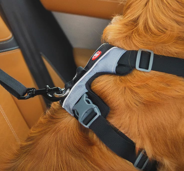 事故の際に前に飛び出して怪我することを防ぎます。車内で愛犬を固定しておかないと、運転の妨げとなり法律に違反する場合もあります。