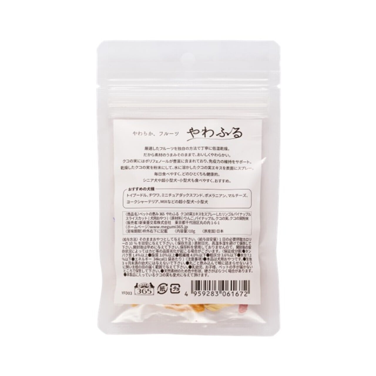 【犬用おやつ】やわふる クコの実エキスをスプレーしたリンゴ&パイナップルスライスカット 10g